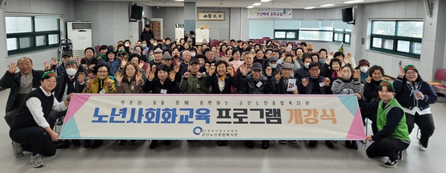 군산노인종합복지관(관장 정미순)은 올해 노년사회화교육의 시작을 알리는 ‘개굴개굴, 배움이 깨어나는 개강식’을 개최, 100여 명의 어르신들과 함께 힘찬 출발을 알렸다.