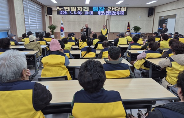 지난 6일 군산시노인회관에서 진행된 이번 간담회는 노인공익활동사업 팀장 130명을 대상으로 올해 사업 추진방안에 대한 설명과 함께 격려를 겸했다.