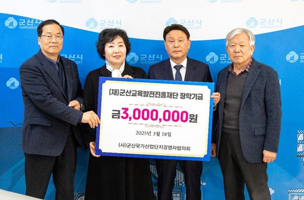 사단법인 군산국가산단경영자협의회(이하 경영자협의회)가 군산교육발전진흥재단(이사장 강임준)에 군산교육 발전을 위한 장학기금으로 300만원을 기탁했다.