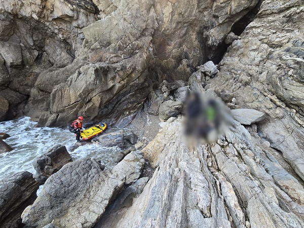 현장에 도착한 해경은 바다 수심이 얕고 암초들이 있어 연안구조정 접근이 어려울 것으로 판단하고 동력 서프보드를 내려 구조에 나서 같은날 오후 2시 27분경 안전하게 구조했다.