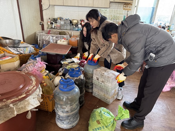 서수면행정복지센터 직원들이 3일에 걸쳐 저장강박증으로 생활에 어려움을 겪는 복지사각지대 가구를 위한 ‘사랑 나눔 클린홈’ 봉사활동을 펼쳤다.