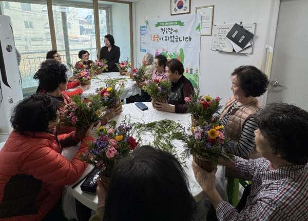 나운1동행정복지센터가 운영 중인 ‘경로당 원예치료프로그램’이 주민들에게 좋은 반응을 얻고 있다.