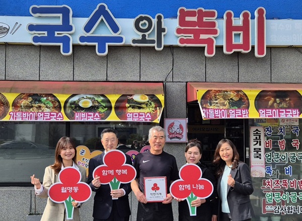 이에 월명동지역사회보장협의체는 25일 지역사회 나눔에 동참한 ‘국수와 뚝비’에 착한가게 현판을 전달했다.