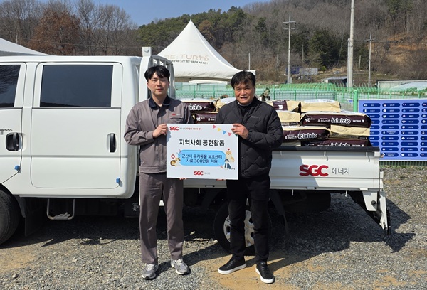 SGC에너지(주)는 25일 지역사회 공헌활동의 일환으로 올해도 군산유기동물보호센터에 300만원 상당의 사료를 기부했다.