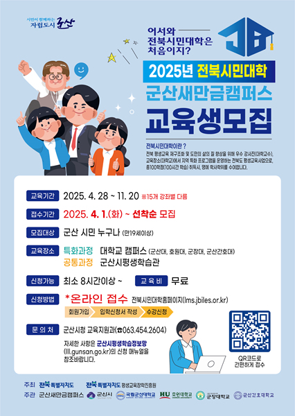 시는 전북시민대학 군산 새만금 캠퍼스 교육 과정을 통해 100학점을 이수한 시민은 명예 학사학위를 수여할 예정이다.
