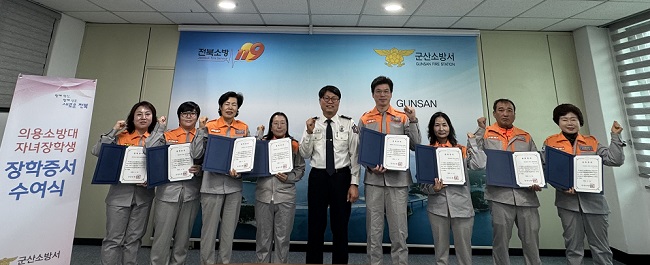 군산소방서(서장 구창덕)가 올해도 지역사회 안전을 위해 헌신하는 대원들에게 감사하는 마음을 담아 의용소방대원 자녀들에게 장학금을 수여해 귀감이 되고 있다.