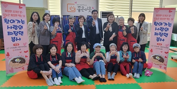 군산농협(조합장 박형기)이 고향주부모임(회장 김성희)과 가정의 달을 맞아 14일 발달장애인들의 평생교육센터인 좋은이웃을 찾아가 ‘사랑의 짜장면 나눔 봉사활동’을 펼쳤다.