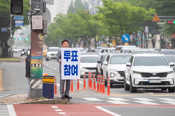 강 시장은 20일 오후 6시 30분부터 수송동 롯데마트 앞에서 ‘대통령선거 꼭 투표하십시오’라는 문구가 적힌 피켓을 들고 퇴근길 시민들에게 투표 참여를 당부했다.