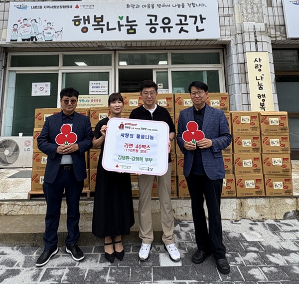 나운2동 지역사회보장협의체는 김태환‧강정희 부부가 ‘행복나눔 공유곳간’에 110만원 상당의 라면 40상자를 전달했다고 16일 밝혔다.