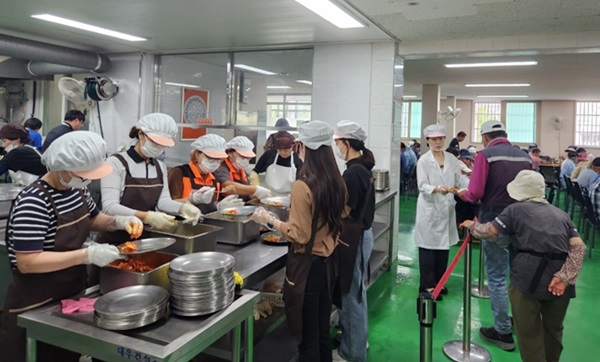 특히, 이번 봉사에 참여한 행정복지센터 직원과 지역 자생단체 봉사원은 소외층 어르신들의 따뜻한 점심식사를 위한 재료 준비부터 음식 조리, 배식, 설거지까지 전 과정을 함께 했다.