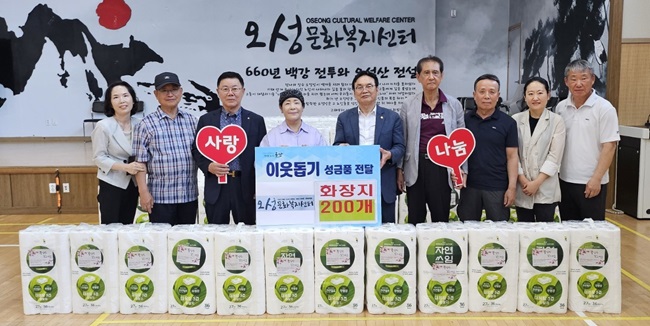 성산면 오성문화복지센터(위원장 채인석)가 관내 독거노인과 저소득 취약층 200가구에 화장지(30롤) 200개를 전달하며 훈훈한 나눔을 실천했다.