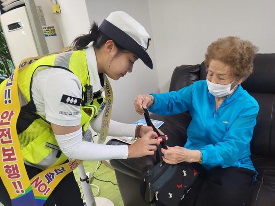또한, 순찰 중에도 자전거를 타는 어르신들에게 교통안전 홍보와 함께 경광등을 달아드리는 등 교통법규 준수 홍보를 진행하고 있다.