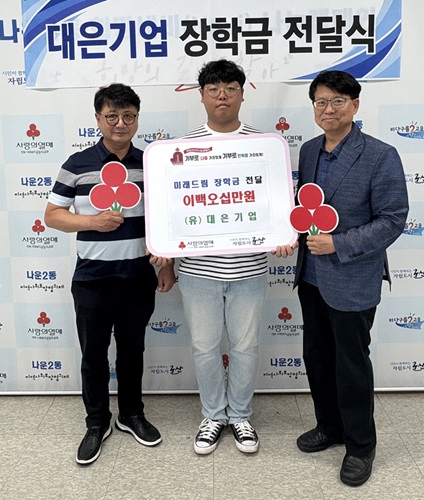 나운2동 행정복지센터는 (유)대은기업이 관내 저소득 청소년들의 꿈과 희망을 응원하는 ‘미래드림 장학금’ 250만원을 전달했다고 27일 밝혔다.