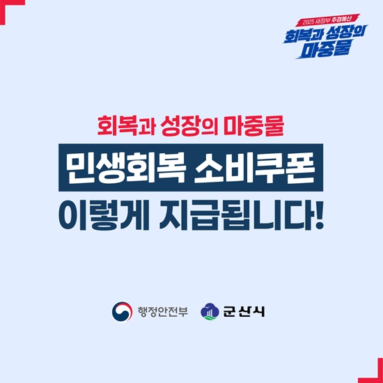 또한 민생회복 소비쿠폰 관련 시민 불편 최소화와 혜택 확대를 위해 군산시 전담 콜센터(☎063-454-4370)도 운영된다.