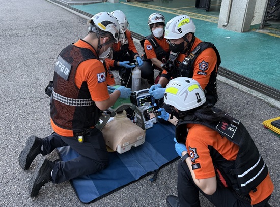 훈련은 실제 상황과 유사한 시뮬레이션 방식으로 진행됐으며 ▲심폐소생술(CPR) ▲자동심장충격기(AED) 사용 ▲구급차 이송 과정 등을 포함했다.