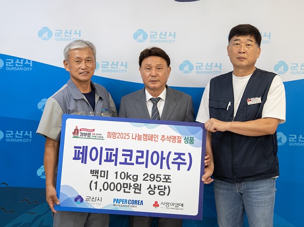 지역 향토기업 페이퍼코리아㈜(대표이사 권육상)가 다가오는 추석 어려운 이웃을 위해 백미 10㎏ 295포(1,000만 원 상당)를 기탁했다.