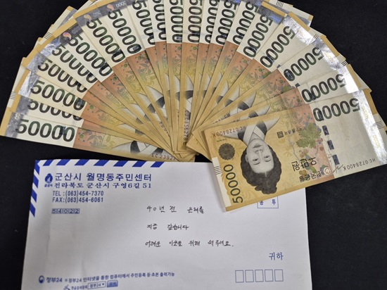 이 익명의 기부자가 남긴 성금은 전북사회복지공동모금회를 통해 지정 기탁돼 월명동에 거주하는 저소득층 지원에 사용될 예정이다.
