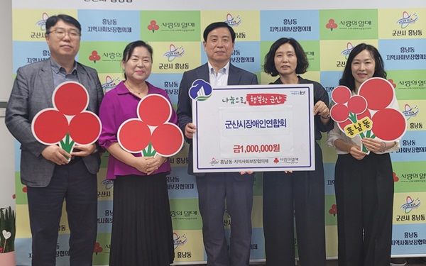 (사)군산시장애인연합회가 어려운 이웃의 밑반찬 지원을 위해 15일 흥남동행정복지센터에 총 100만원을 기탁해 주위를 훈훈하게 했다.