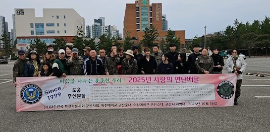 군산특전사동지회의 연탄 나눔은 1999년부터 매년 꾸준히 이어져 온 지역대표 나눔 봉사활동으로 올해로 26년째를 맞았다.
