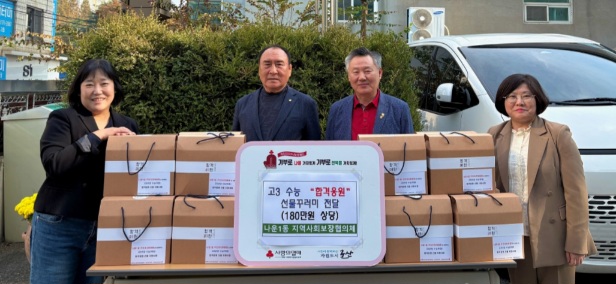 나운1동 지역사회보장협의체는 관내 저소득가정 자녀 중 2026년도 대학수학능력시험을 앞둔 고3 수험생 합격을 응원하는 선물꾸러미를 전달했다.