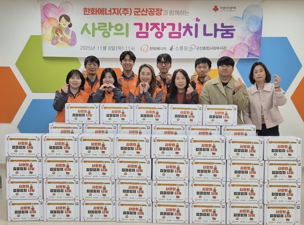 한화에너지(주) 군산공장 관계자는 “기업의 사회공헌활동은 단순한 지원을 넘어 지역사회와 함께 성장하는 의미있는 일이다”며 “이번 김장김치 나눔이 어르신들께 작은 위로와 건강한 겨울을 선물하길 바란다”고 말했다.