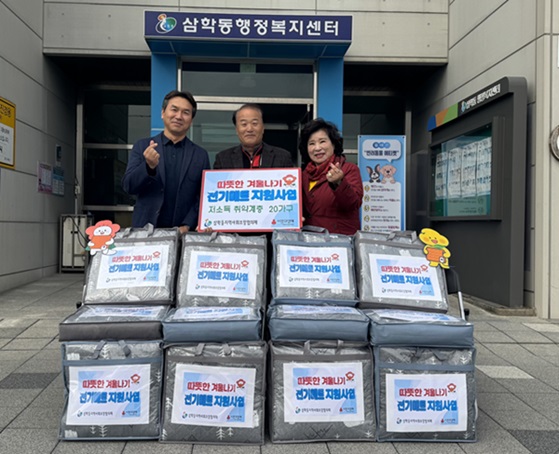 삼학동 지역사회보장협의체와 삼학동행정복지센터가 12일 난방 취약가구에 난방용품 전기매트 20개(현금 120만원 상당)를 전달하며 온정을 베풀었다.