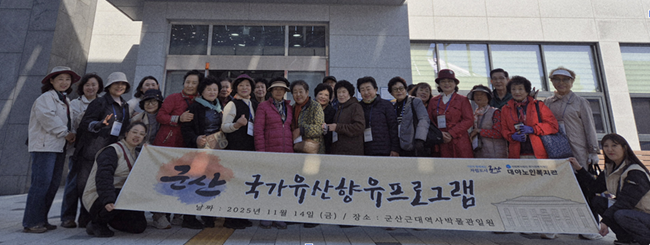 대야노인복지관(관장 채현옥)은 14일 군산시 문화예술과에서 진행한 ‘국가유산 향유 프로그램(역사탐방)’에 동참했다.