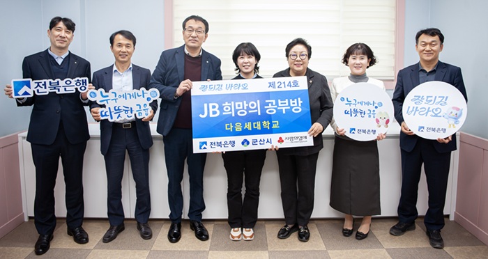 JB금융그룹 전북은행(은행장 백종일)은 군산시 다음세대학교에서 공부방 오픈식을 실시했다고 19일 밝혔다.