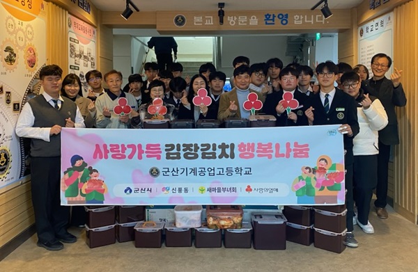 군산기계공고는 지난 25일 ‘사랑가득 김장나눔 행사’를 열고 학생들과 교직원이 함께 담근 김장김치 25박스를 신풍동행정복지센터에 전했다.