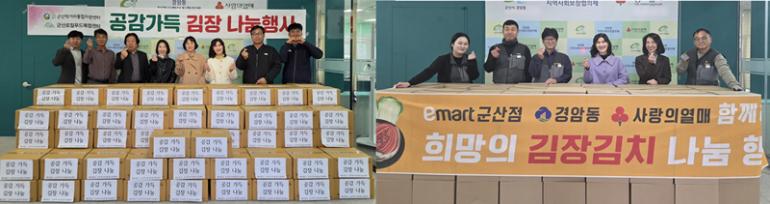 경암동 행정복지센터는 군산로컬푸드복합센터(센터장 이창한)와 이마트 군산점(점장 이석호)이 김장김치를 기탁하며 올해도 변함없는 이웃사랑을 실천했다고 27일 밝혔다.