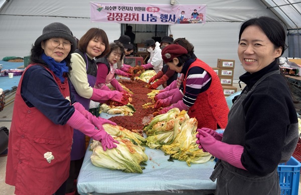 서수면 주민자치위는 매년 이웃 간 따뜻한 정을 나누고자 사랑의 김장김치 나눔 행사를 실시해 왔으며 올해도 위원 20여 명과 서수면행정복지센터 직원들이 참여해 김장김치 120포기를 담갔다.