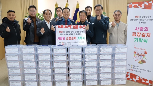 군산경찰서(서장 김현익)와 경찰 청소년협력단체 청소년지도위원회(회장 유복근‧이하 청지위), OCI(주) 군산공장(공장장 심재엽)이 지난달 27일 소외층 청소년에 김장김치로 따뜻한 사랑을 전했다.