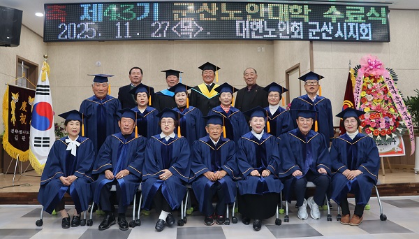 이래범 군산시노인회장은 “배움의 열정으로 건실한 결실을 맺고 학사모 쓰고 계신 어르신들께 존경과 더불어 축하드리며 내년에도 밝고 건강한 모습으로 뵐 수 있도록 건강관리에 각별히 유념하시길 바란다”고 전했다.