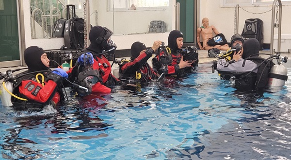 군산소방서는 수난 구조 전문성 강화를 위해 풀페이스 마스크 잠수장비 사용법과 비상 상황 대응 절차에 대한 집중 교육을 실시했다.