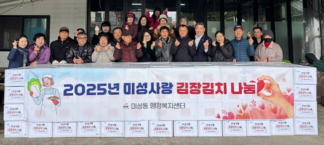 미성동행정복지센터는 28일 김장김치를 어려운 이웃과 나누는 ‘미성사랑 김장김치 나눔 행사’를 추진했다.