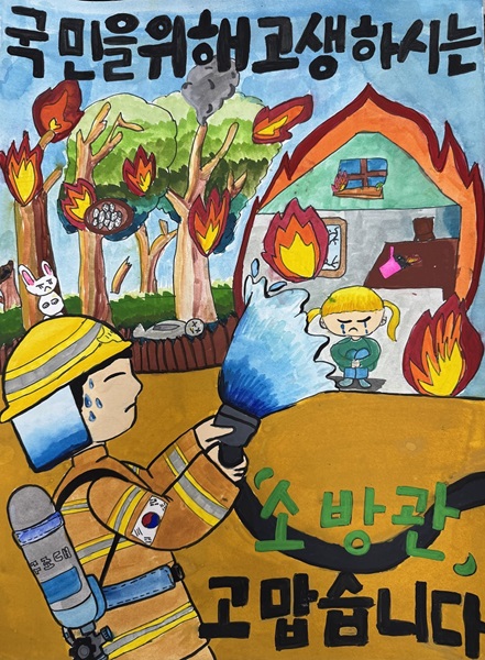 군산소방서 주최 ‘2025 어린이 불조심 손그림 포스터 공모전’에서 군산부설초 4학년 김설아 학생이 최우수상을 받았다.