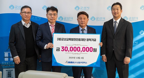 군산시는 ㈜삼일씨엔에스(유청무 대표 외 2명)가 군산교육발전진흥재단에 이같이 기탁했다고 4일 밝혔다.