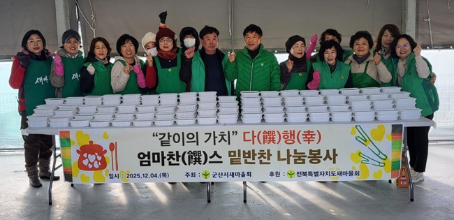 군산시새마을회(회장 심영배)는 지난 4일 별관에서 ‘엄마찬(饌)스 밑반찬 나눔’ 행사를 개최하며 지역 이웃들에게 따뜻한 온정을 전했다.