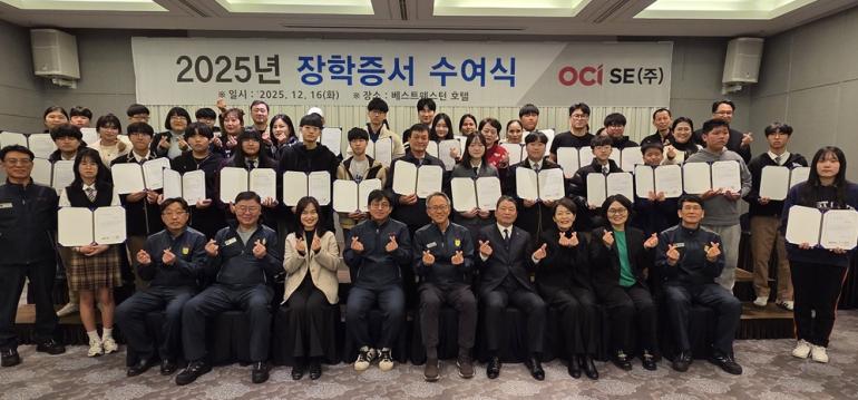 OCI SE(대표이사 김원현)는 지난 16일 발전소 인근 베스트웨스턴 호텔에서 ‘2025 OCI SE 장학증서 수여식’을 개최했다.