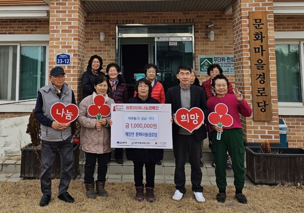 황은호 개정면장은 “지역을 위해 따뜻한 나눔을 실천해주신 문화마을경로당 회원분들께 감사드린다”며 “기탁하신 성금은 도움의 손길이 필요한 취약층을 위한 사업을 추진하는 데 소중히 사용하겠다”고 전했다.
