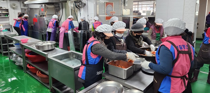 한국생활개선군산시연합회(회장 배지영)가 28일 군산경로식당에서 어르신들을 위한 무료급식 배식과 설거지 봉사활동을 통해 이웃사랑을 실천했다.