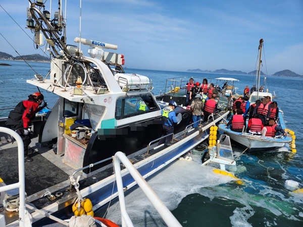 ◇2024년 4월 낚시어선-어선 간 충돌사고로 인해 해경이 승객을 구조하고 있다