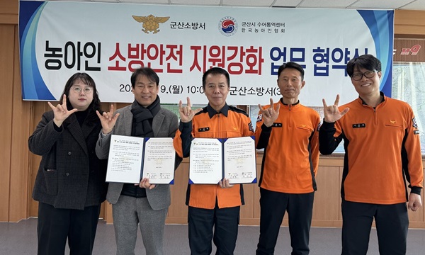 군산소방서는 9일 농아인 맞춤형 119 대응체계 구축을 위해 군산시수어통역센터와 업무협약을 체결했다고 밝혔다.