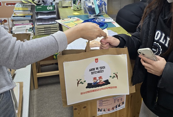 군산시청소년문화의집(관장 김보경·이하 청문집)은 지난 13일 법무부 청소년 범죄예방위원 군산익산지역협의회 군산지구위원회(회장 문상식·이하 청소년 범죄예방위원회) 후원을 받아 청소년들에게 설 명절 선물을 전달했다고 밝혔다.