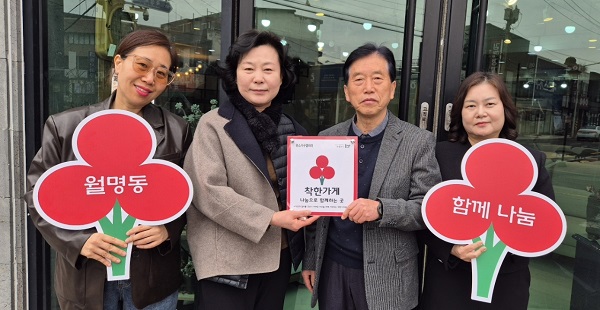 이에 월명동 지역사회보장협의체는 5일 퀸스 가구갤러리에 착한가게 현판을 전달했다.