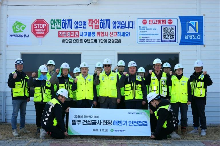 새만금개발공사(사장 나경균·이하 공사)는 해빙기 안전사고 예방을 위해 17일 수변도시 건설 현장을 대상으로 안전점검을 실시했다