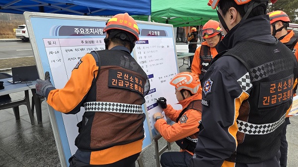 군산소방서(서장 김현철)는 재난 발생 시 신속한 긴급구조통제단 가동과 긴급구조지원기관 간 원활한 협조체계 구축에 나섰다.