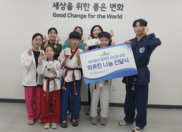 이번 후원금은 박성광온리원태권도장 원아들이 ‘1,000번 지르기’에 도전하며 마련한 것으로 참여한 아동들은 쉽지 않은 과정속에서도 도움이 필요한 또래 친구들을 떠올리며 끝까지 포기하지 않고 완주해 의미를 더했다.