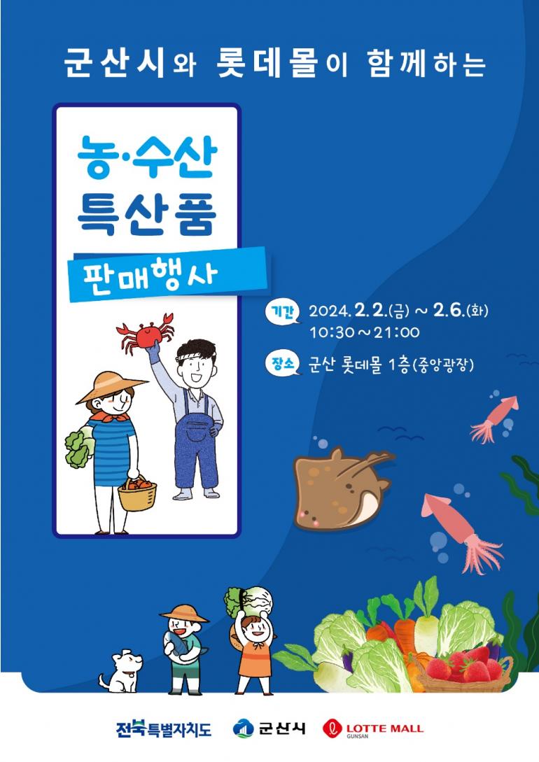 군산시와 롯데몰 군산점이 지역 상생 일환으로 다가오는 설을 맞아 2월 2일부터 6일까지 5일간 군산지역 농수특산물 특별판매전을 진행한다.