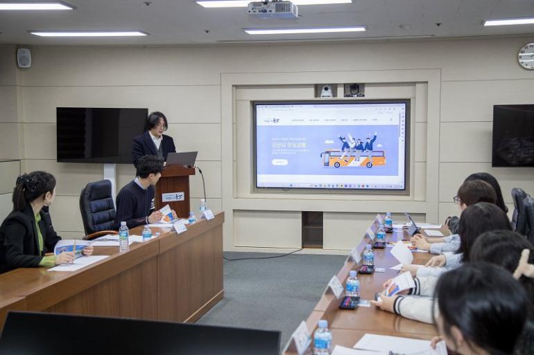 군산시는 23일 청사 내 면담실에서 청소년 유관단체 등과 함께 중·고등학생 무상교통 홈페이지 시연회를 가졌다.